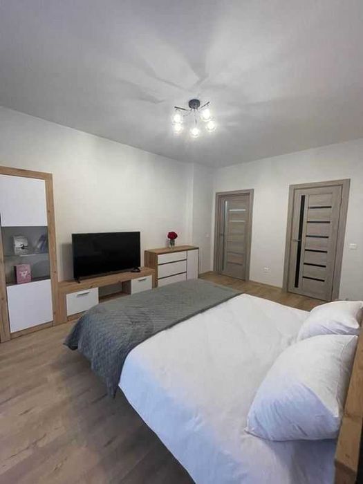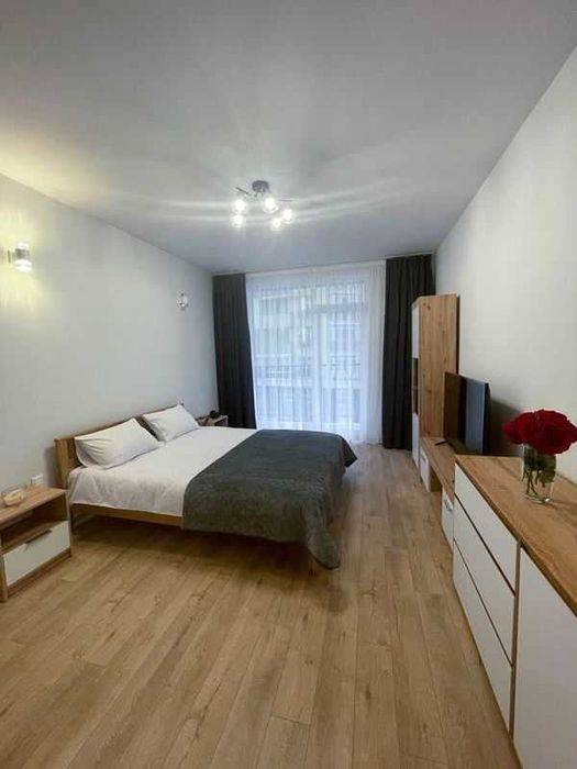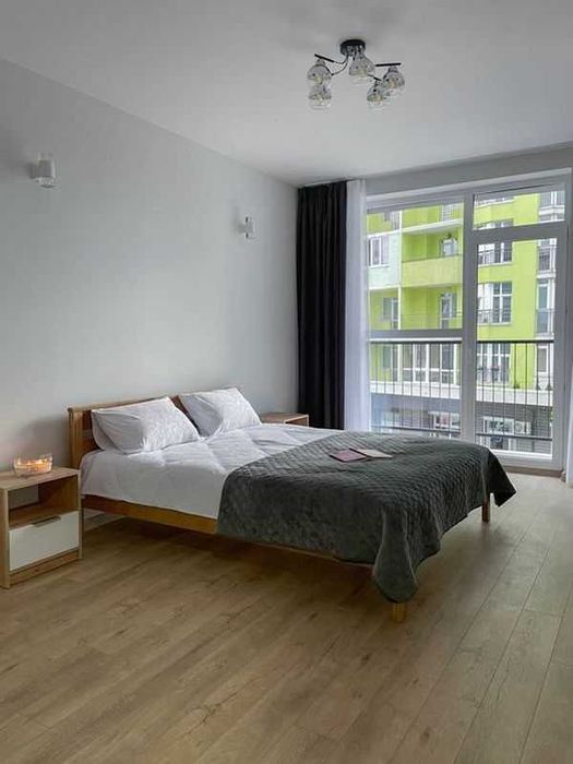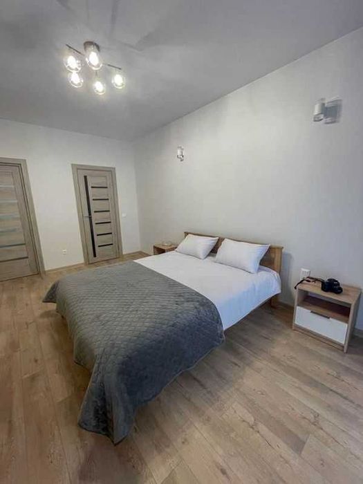 Будинок чистий і доглянутий, регулярно прибирається. У квартирі є всі необхідні меблі та побутова техніка: двоспальне дерев'яне ліжко 160×200 см з якісним ортопедичним матрацом, телевізор 55 із функцією Smart TV 4K, Wi-Fi. У спальні - окрема гардеробна.