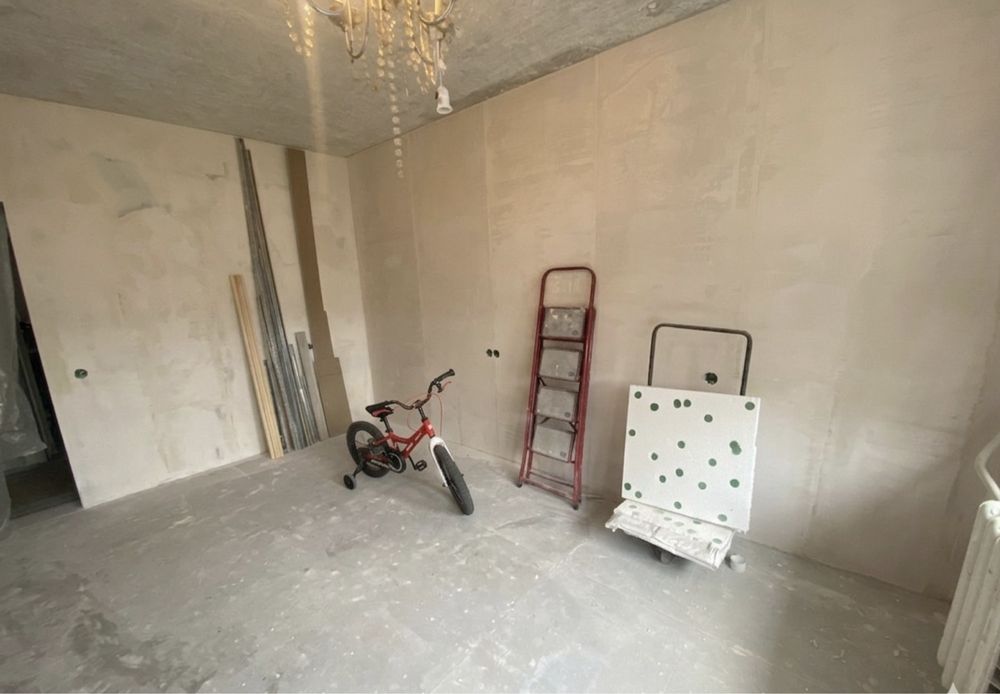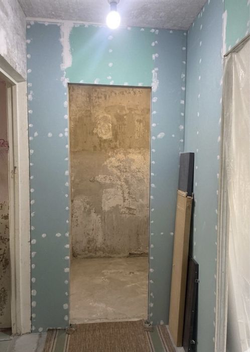 • Вже зроблено базові роботи: * Частково вирівняні стіни та підлога (найбрудніший етап вже позаду!).