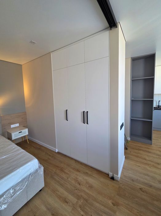 — Системи зберігання: Великі вбудовані шафи в коридорі та спальній зоні, а також ліжко з підйомним механізм забезпечують достатньо місця для всіх речей.