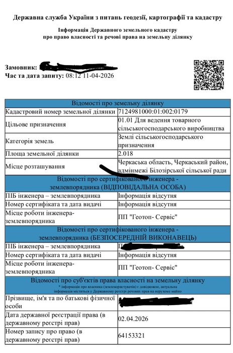 | Земельна ділянка: |