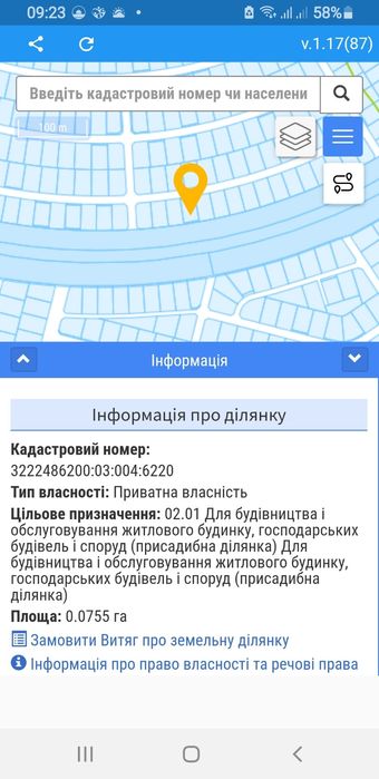 | Земельна ділянка: |