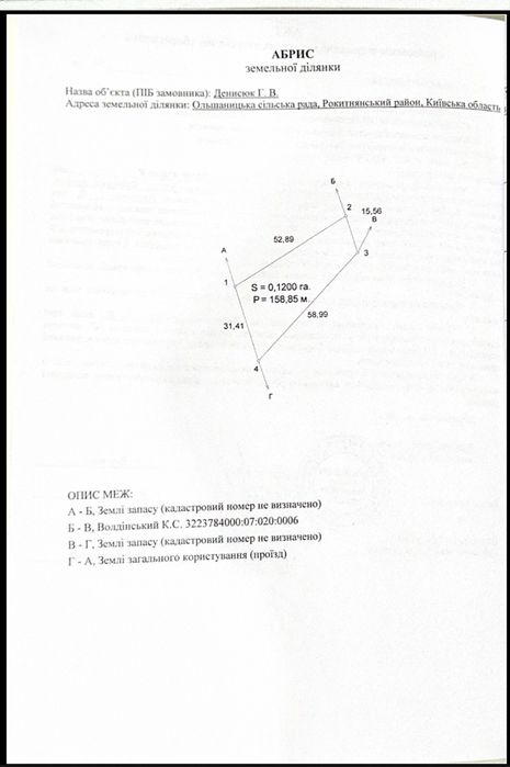 | Земельна ділянка: |
