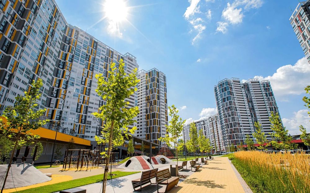 на території ЖК: під постійним доглядом, прибрано, засаджені зелені двори, дитячі і спортивні майданчики, Сільпо, кафе, аптека, магазини, ін.