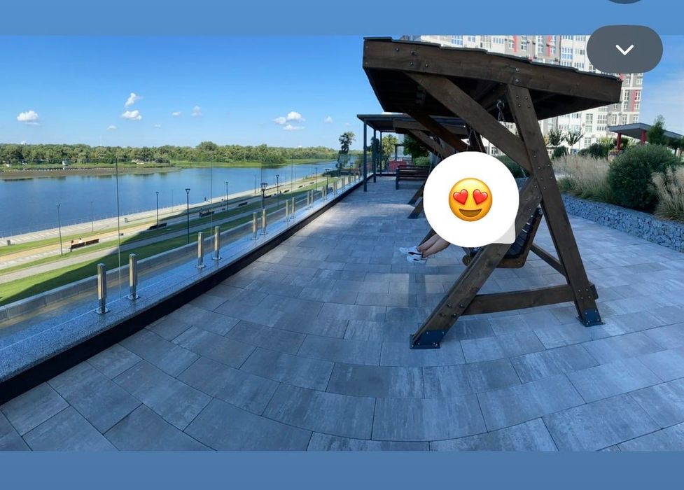 Велика, зелена і тиха прибудинкова територія, 50 метрів до річки Дніпра, з усіма зручностями.