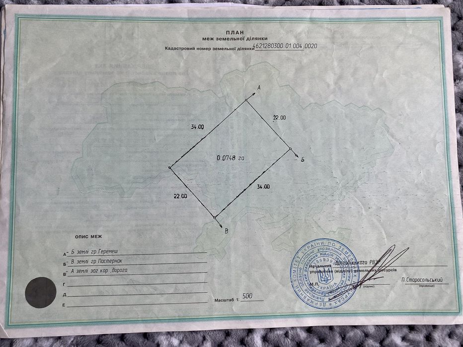 | Земельна ділянка: |