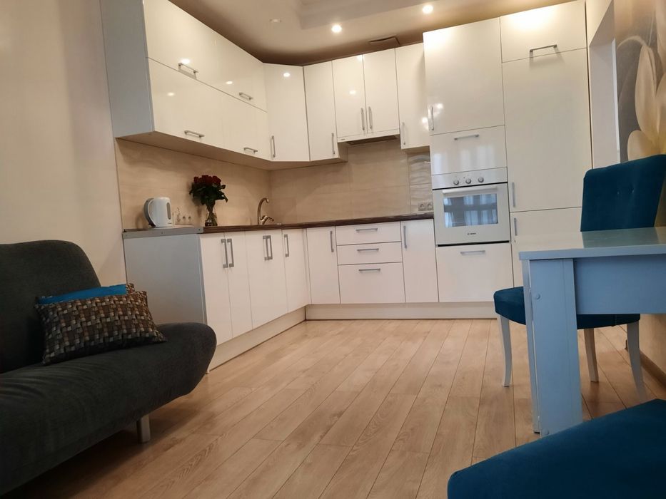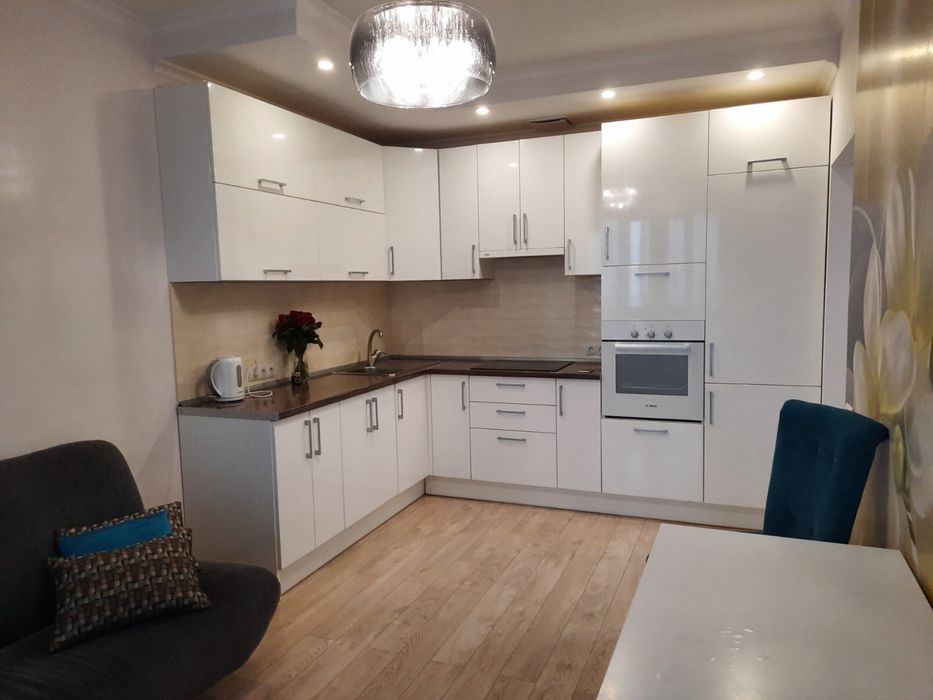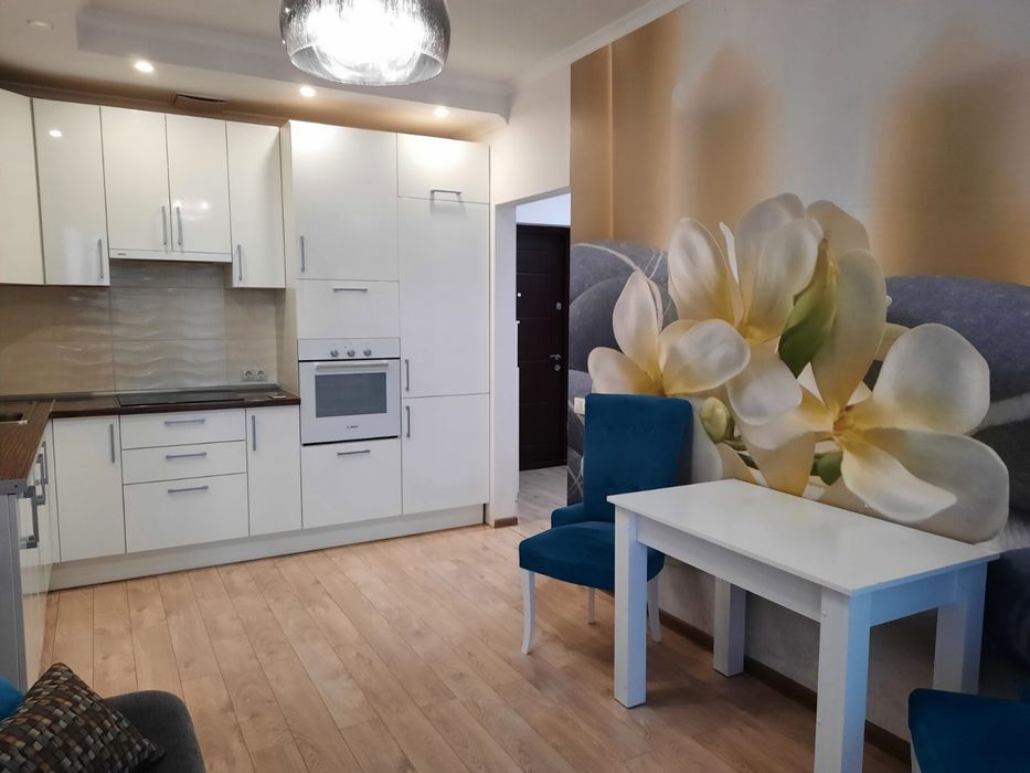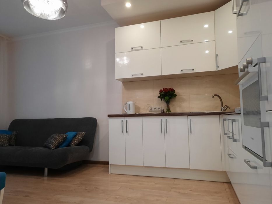 Дарницький; Продажа квартиры,ЖК Заречный,Дарницкий р-н; Евро двухкомнатная квартира в ЖК Заречный, отдельная спальня (16м)+кухня студия. Хороший ремонт,мебель и техника ( духовка Bosch,варочная поверхность и стиральная машина Electrolux,посодомойка Indesit,встроенный холодильник Hansa,телевизор Philips55 дюймов 4К Ultra HD. Есть бойлер , вытяжка, кондиционер LG.Квартира делалась для себя:немецкая проводка, немецкий дорогой ламинат, качественная сантехника,дизайнерский люстры Zuma Line. Восточная сторона, вид из окна на проспект Бажана. Комплекс бизнес-класса, круглосуточная охрана,видеонаблюдение ( в т.ч.в лифте и на этаже),закрытая большая территория,детский площадки,футбольное поле,магазины,салоны красоты, кафе, рестораны, стаматология, подземный паркинг и гостевые парковки. Метро Славутич - 2 минуты, супермаркет Новус, АТБ, Сильполь. Садик на территории комплекса. Рядом есть пляж. Оплата возможна в любой валюте. Документы готовы на продажу.
