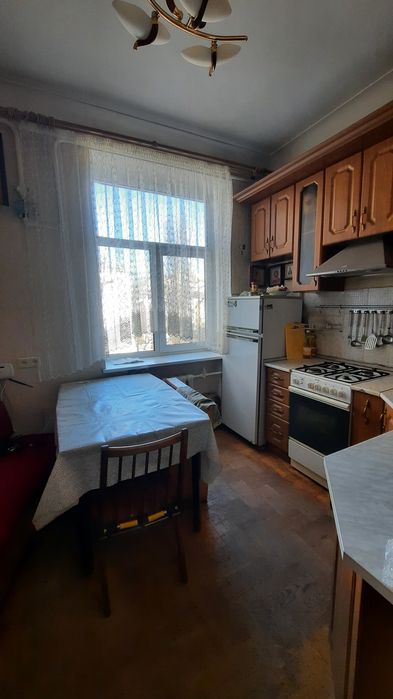 Це класична п'ятиповерхова «сталінка» з високими стелями (3 м) та товстими цегляними стінами.