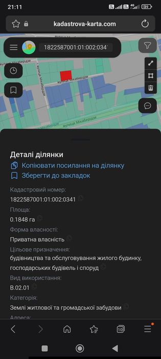 | Земельна ділянка: |