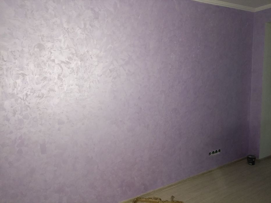 По всій квартирі ламінат (33 клас), стіни з візерунком та пофарбовані.