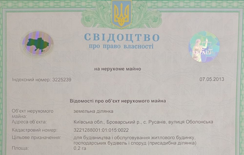 Продам участок 20 соток с.Русанов,Броварской р-н, ул.Оболонская; Продам участок 20 соток в с.Русанов, Броварского р-на, Киевской области. Целевое предназначение-под строительство жилого дома. Кадастровий номер. 3221288001:01:015:0022. В селе есть школа, магазин, церковь. Каждую среду есть привозной базар. Недалеко река Трубеж, озеро для риболовли.За 100 и 200 метров от участка есть дома, где постоянно проживают люди.Траса Киев -Прилуки,автобус доезжает до метро Лесная.Хорошее предложение для постройки жилого дома мли дачи. От собственника, без комиссии для покупателя.