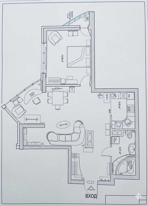 Величезна кухня-вітальня (38.4 м²) для ваших найкращих вечорів та затишна ізольована спальня (20.5 м²) для ідеального відпочинку.