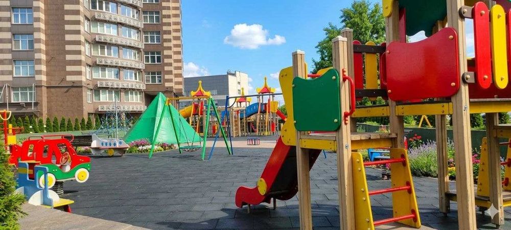Для сім'ї: Дитячий садок розташований прямо на стилобаті комплексу (4-й поверх), що гарантує безпеку вашим дітям під час прогулянок.