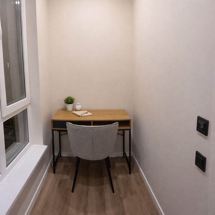 Продумане планування: окрема спальня, зона відпочинку та робоче місце.