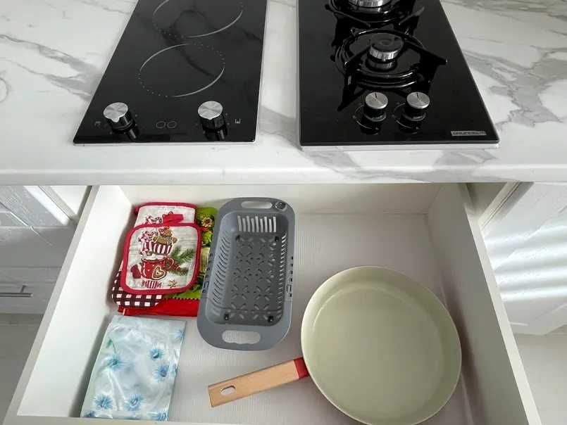 Всі необхідні меблі та побутова техніка (посудомийна та пральна машина, холодильник, духовка, кавоварка, бойлер, плита газова та електрична, телевізор, пилосос, праска, електрочайник, блендер…).