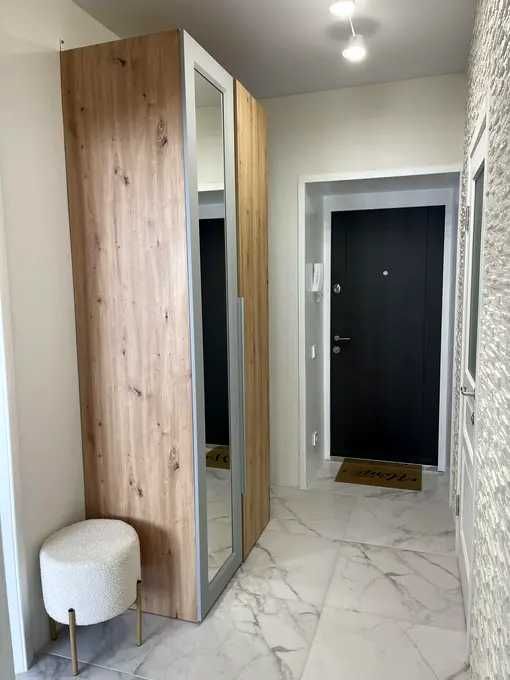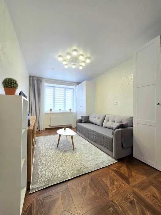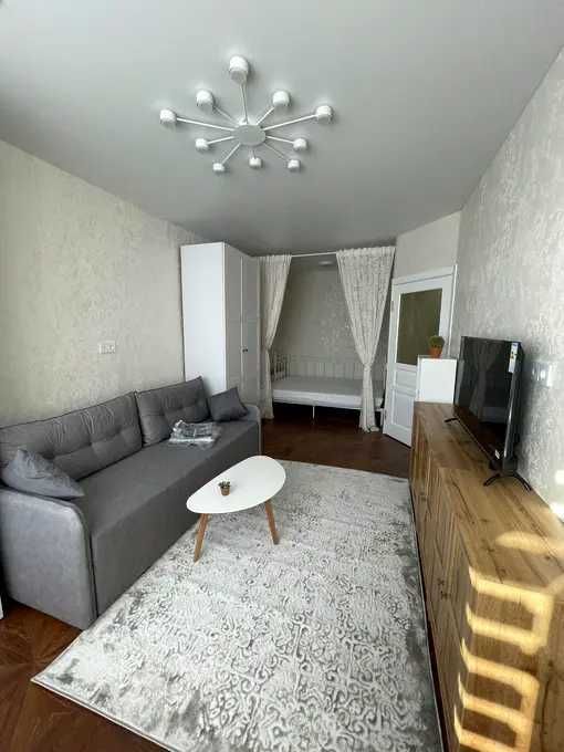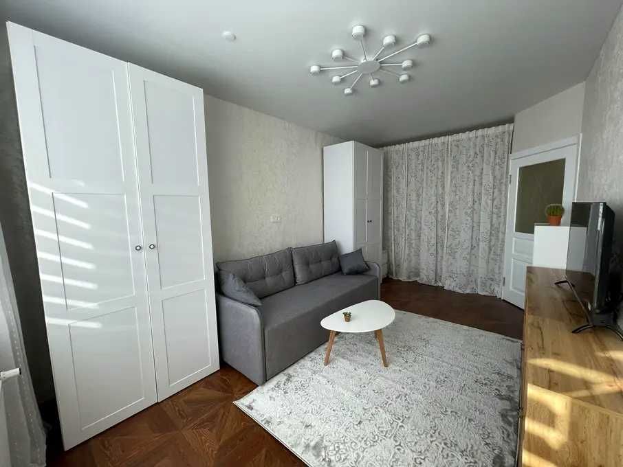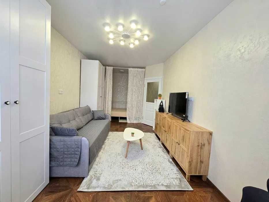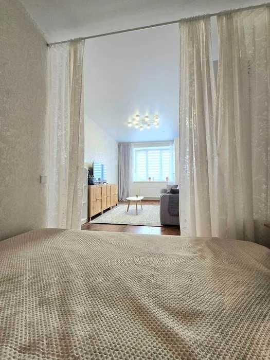- Окрема кухня. В кімнаті диван розкладний та 2 великі шафи + є відокремлена спальна зона з двоспальним ліжком.