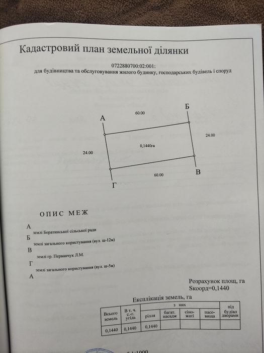 | Земельна ділянка: |