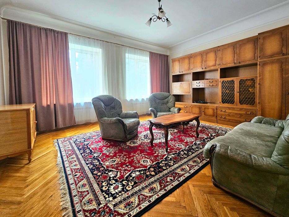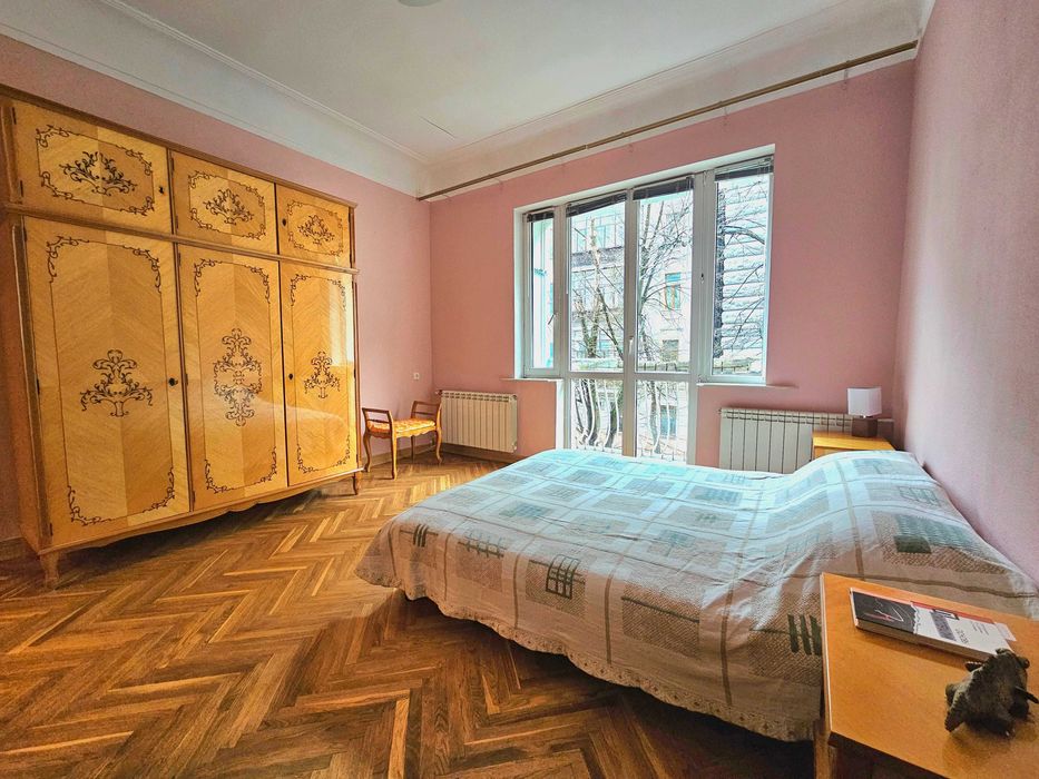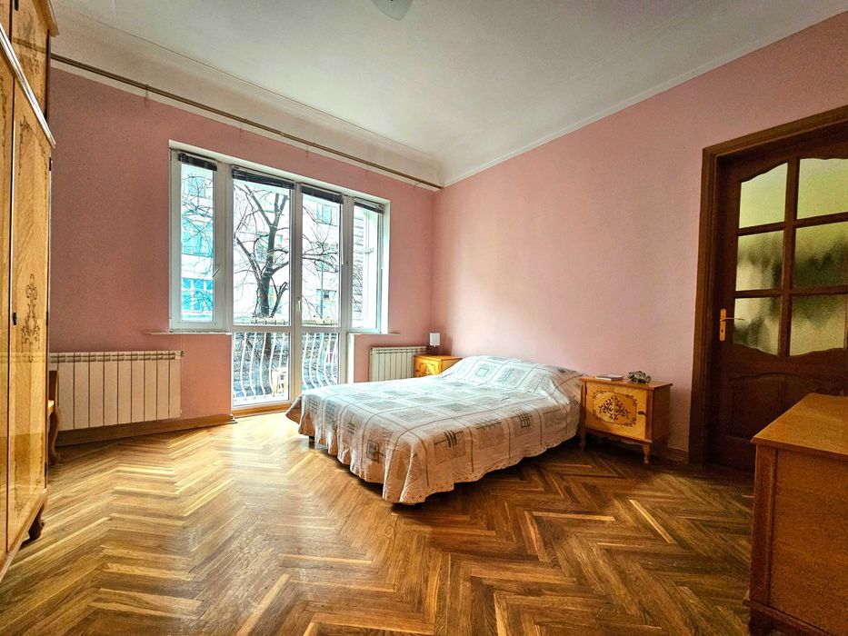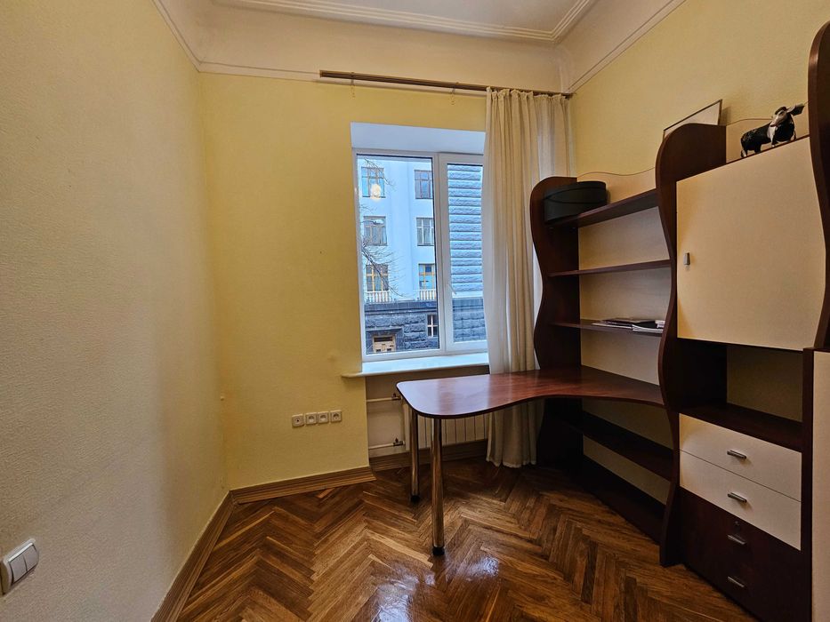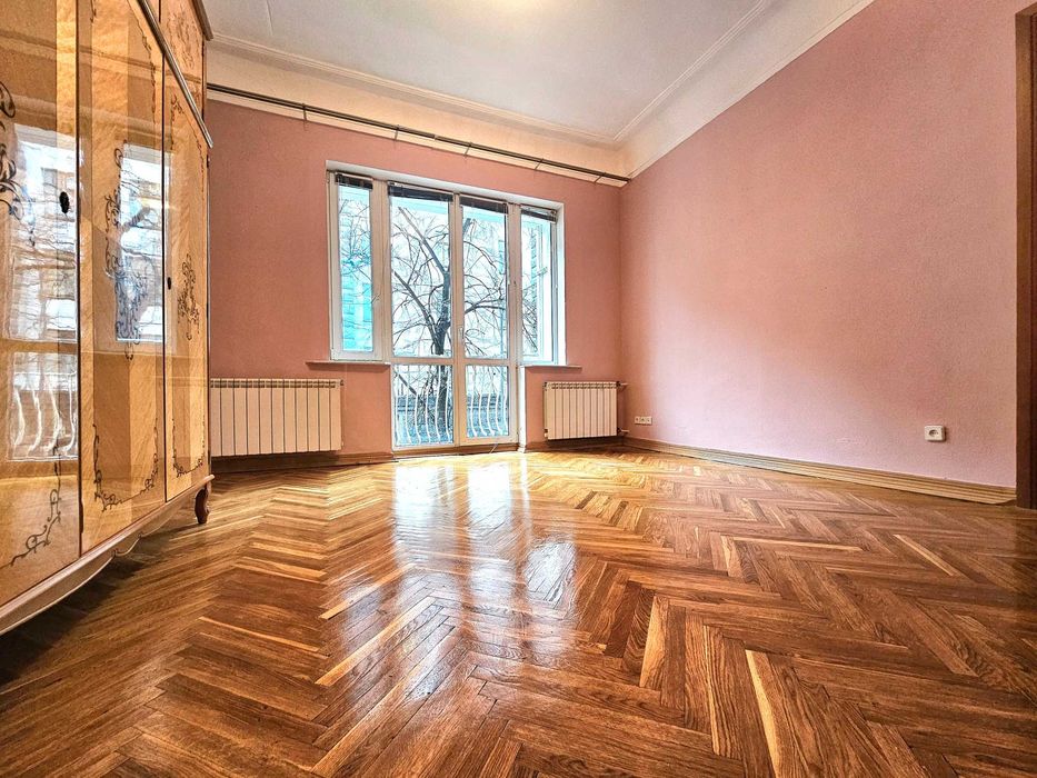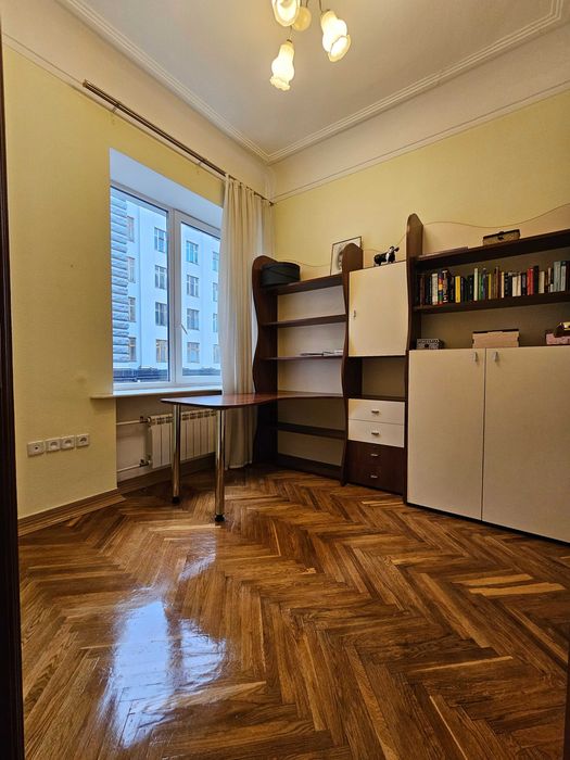 Печерський; Продам квартиру 3 кімнати Печерський центр; Продам трикімнатну квартиру в самому центрі Печерського району по вул. Інститутська. Сталінка, квартира двостороння, вікнами на захід та схід. Розташована на другому поверсі. Чисте парадне, є ліфт. Вихід на вулицю та у двір. Стан квартири дуже гарний, вона охайна й доглянута, продається з усіма меблями. Зі спальні є вхід у кабінет, також є французський балкончик. Вітальня велика з двома вікнами. На кухні також два вінка. В ванній кімнаті є міні сауна.