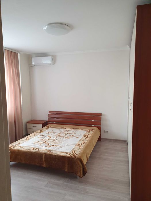 Квартира на 14 поверсі, вікна на південь та на захід, гарний панорамний краєвид, площа 62 кв.м. кімнати 16 та 10 кв.м., кухня 18 кв.м., санвузол суміжний 5 кв.м., в кімнатах та на кухні є кондиціонери. Також в квартирі є кладовка. Балкон відкритий, спільний на 2 кімнати. Вхідні двері броньовані, від ліфтів та сходової клітини поверх також закривається.