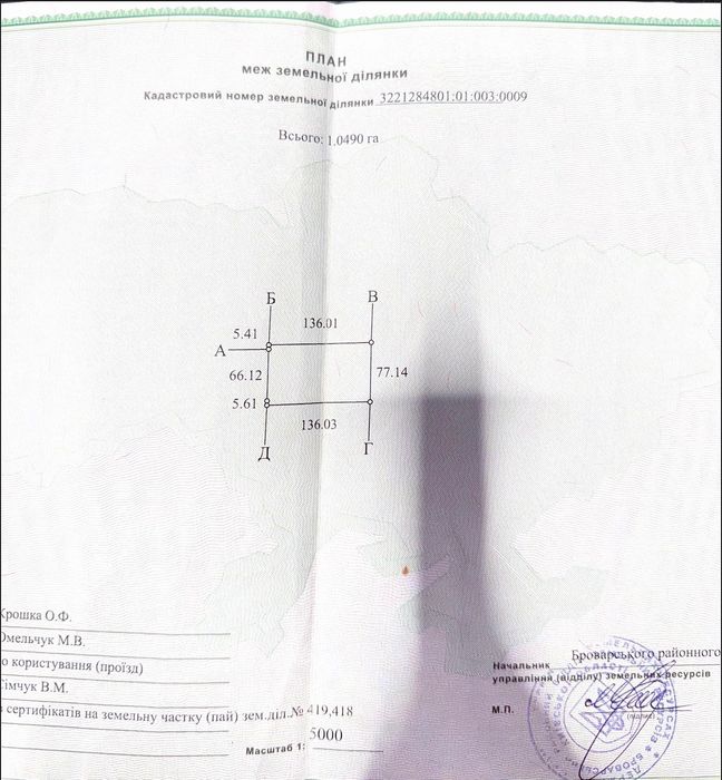 Земельна ділянка; Земельна ділянка в селі Літки Київської області Броварського району. Пай на вʼїзді в село.