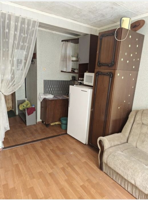 Холодногірський; Гостинка со своими удобствами, хозяин; гостиничного типа общей площадью 19.2. Этаж первый очень высокий, как полуторный, туалет, душ, бойлер- все свое. Район парка Юность на ХГ., остановка транспорта рядом с домом Рассмотрю продажу по сертификату.