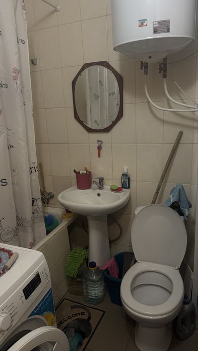 Бойлер на 50л,стиральная машина. Квартира теплая,тихие соседи.