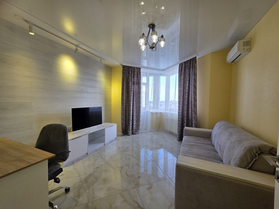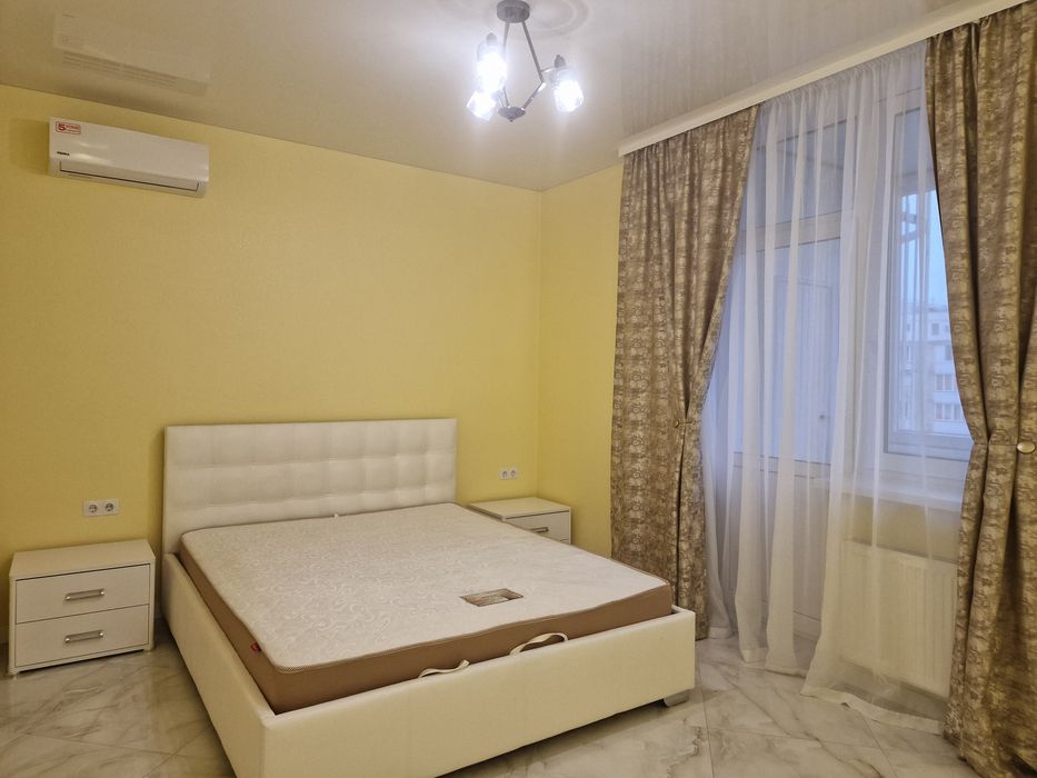 Квартира повністю укомплектована усима необхідними меблями та якісною технікою: 2 кондиціонера , посудомийка, холодильник, варильна панель, духова шафа, пральна машина, бойлер, телевізор, інтернет.Зручне місце. Підземний паркінг. Відеоспостереження, консьєрж. Поруч супермаркети, парки, банки, школи, дитячі садки. У будинку аптека, АТБ, піцерія. Квартира в монолітному 21-поверховому будинку на 18 поверсі.