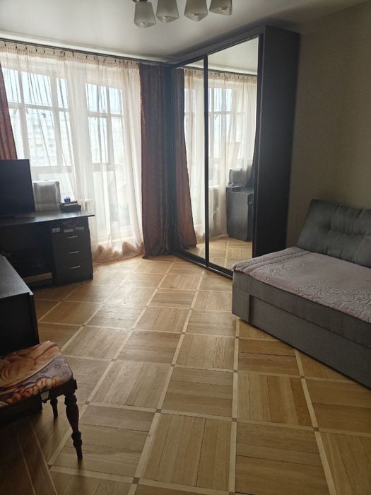 Состояние жилое, пол паркет, в одной комнате натяжной потолок, окна мп, есть 2 шкафа купе, практически новый угловой диван.