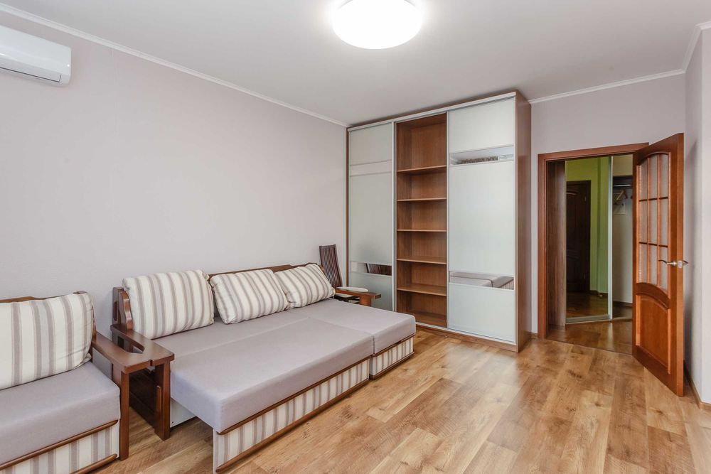 Загальна площа — 43 м², кімната — 18 м², кухня — 12 м², 3 ліфти, консьєрж, домофон, відеоспостереження.