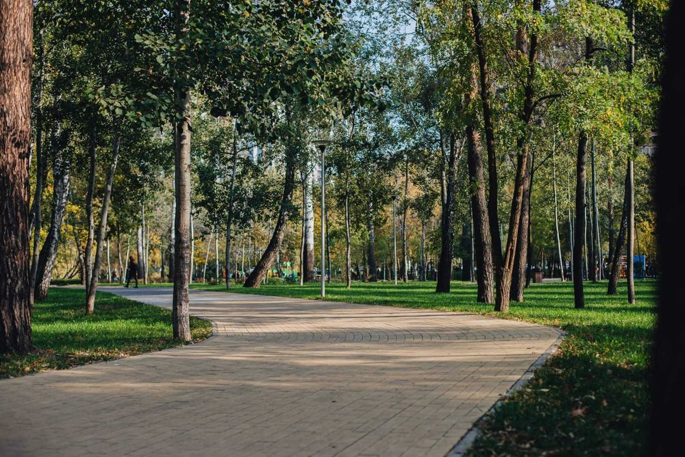 • Большое озеро, аллеи, сад камней и другое.