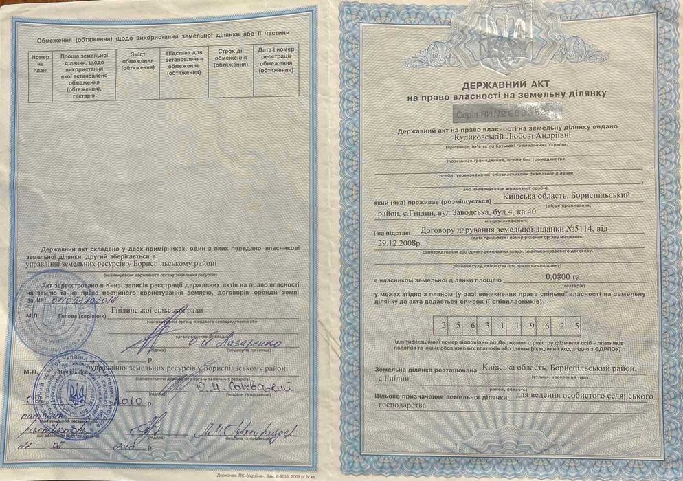 | Земельна ділянка: |