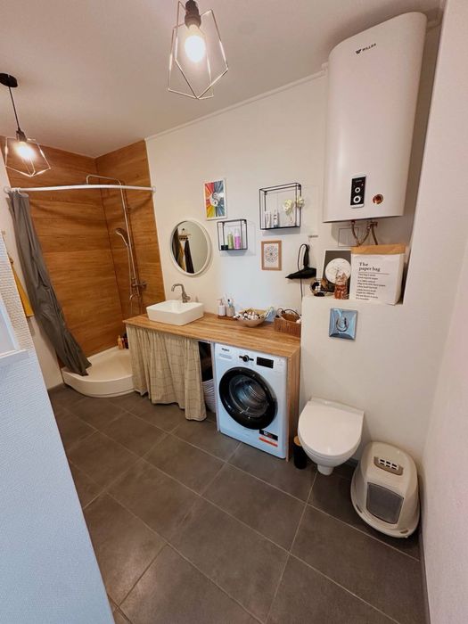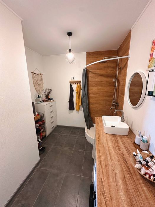 – У ванній плитка, підігрів підлоги (стіни: склошпалери фарбуються, гідроізоляція 2 слоя)