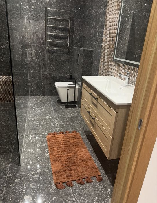Інтер’єр повністю укомплектований новими меблями та сучасною технікою від провідних брендів — усе готове для комфортного проживання без додаткових витрат.