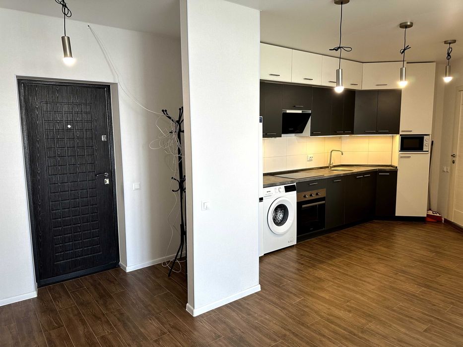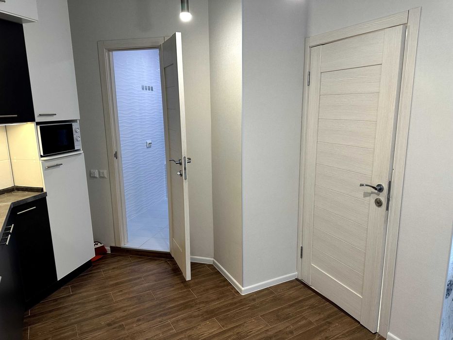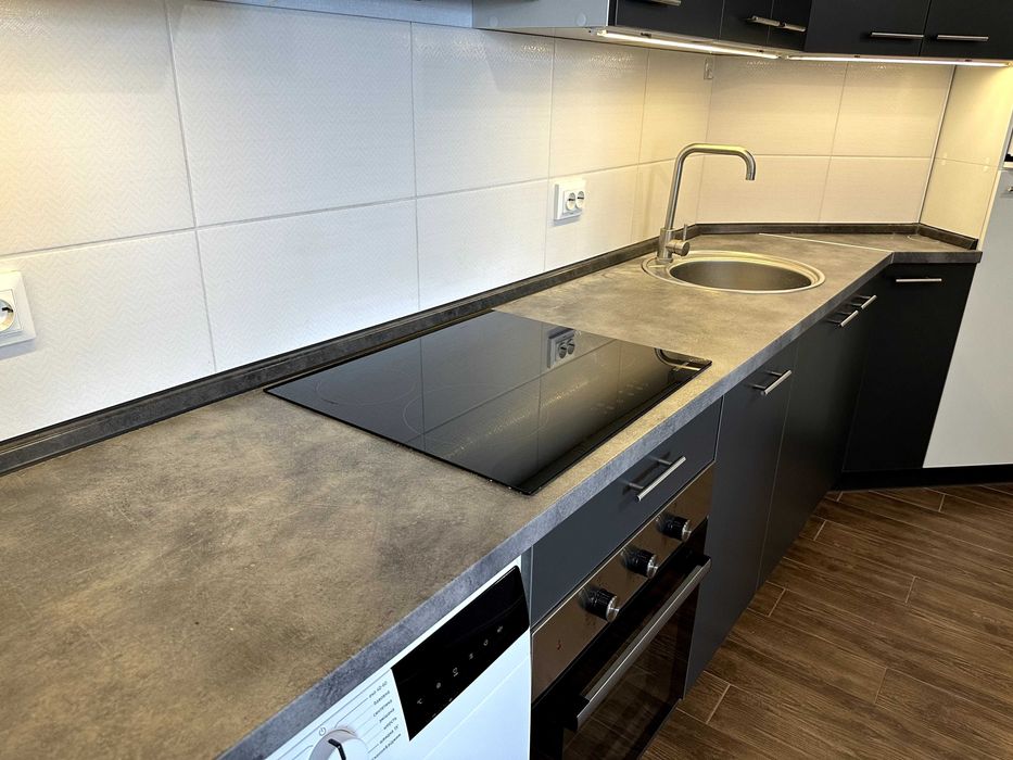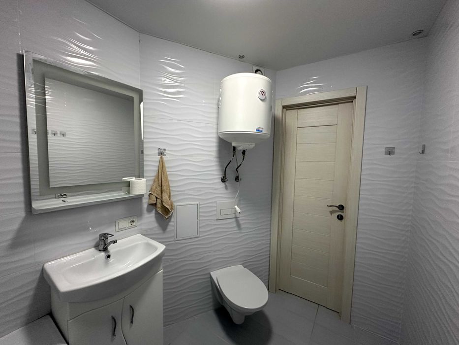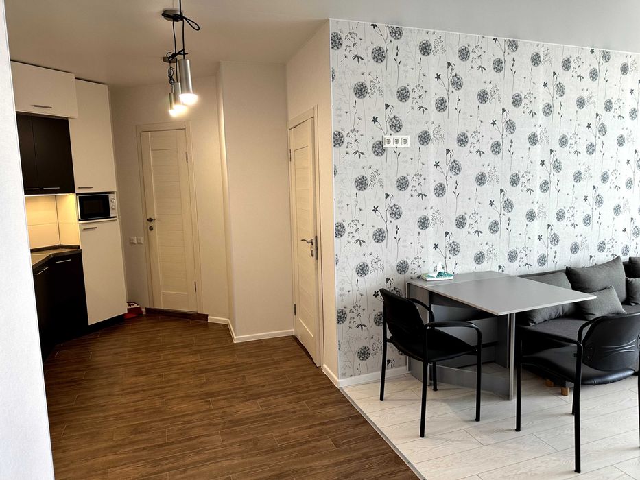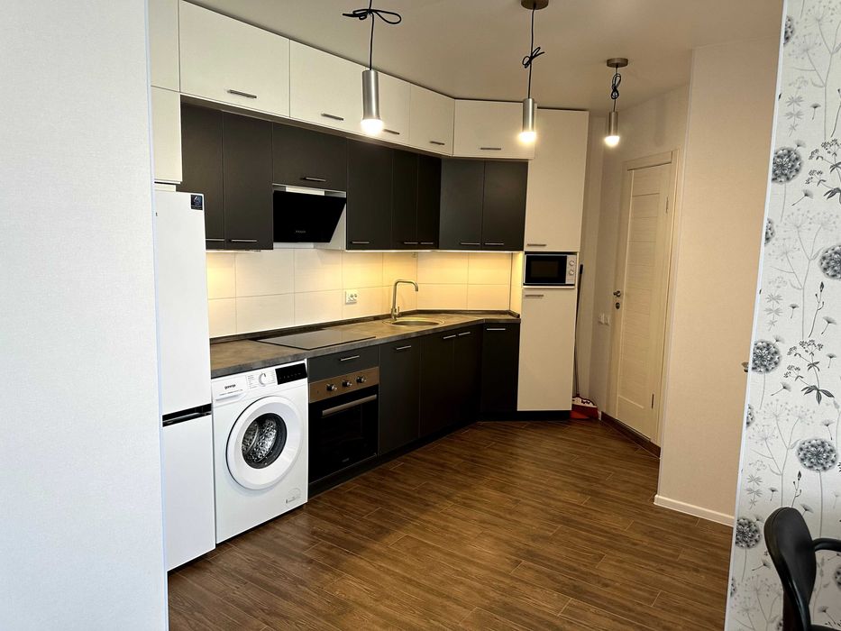 Виконано новий якісний ремонт у сучасному стилі. Квартира повністю укомплектована меблями та технікою: варильна поверхня, духова шафа, холодильник, посудомийна машина, велике ліжко 200×200. У санвузлі — тепла підлога.
