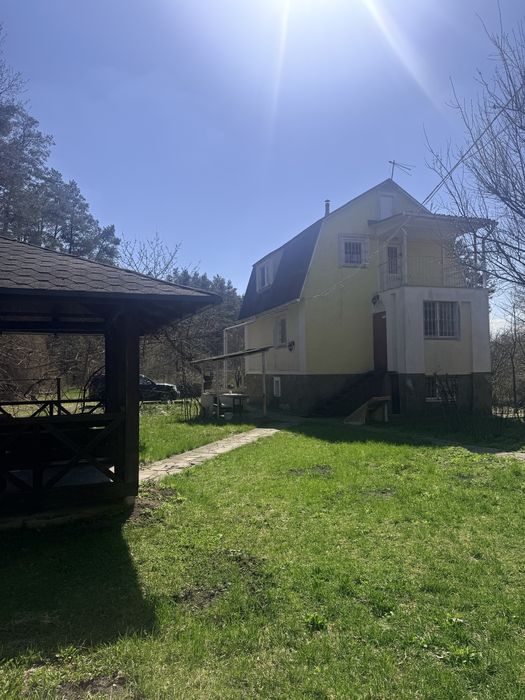Будинок в Киівській області; Продаю власний будинок в дачному кооперативі в с Коржі, 55 км від Києва. Все приватизовано. Мурований в півтори цегли, утеплений 100 мм., бетонні перекриття, ізольований цокольний поверх де розташовані насосна станція з фільтрованою водою, насоси Karcher, двуконтурний газовий котел. Дуже гарна піч, камін, три спальні, два санвузла в будинку, обладнана кухня. Велика зона барбекю, вуличні будівлі. Інтернет оптоволокно. Будинок дуже комфортний для проживання весь рік. Власна скважина. Є додатковий електричний бойлер. Велика ділянка, гарний сад, ділянка оточена лісом.