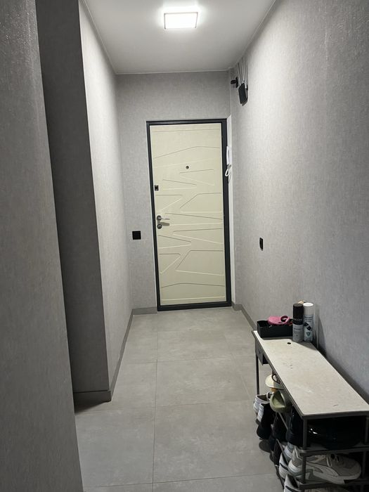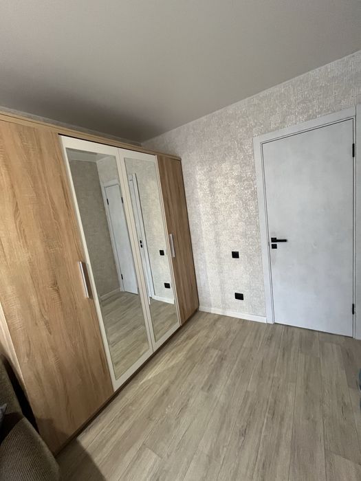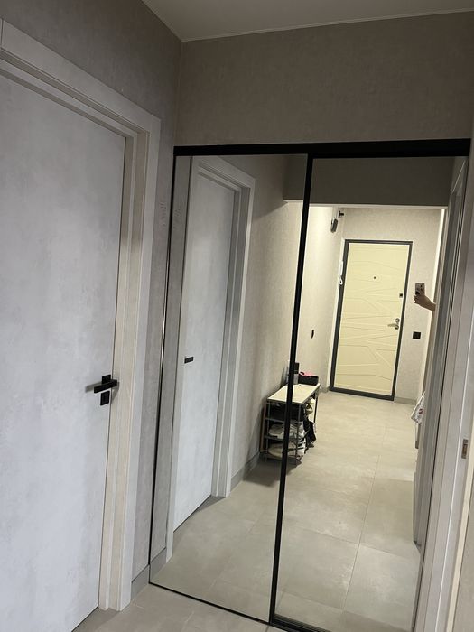 В коридорі та в кухні на підлозі плитка та плінтуса із плитки, що дуже практично. Між двома кімнатами вбудована містка гардеробна з поличками та перекладиною для одягу на вішаках хорошої якості (замовляли на початку 24-го року) з розсувними дверима із дзеркалами, що додає простору приміщенню.