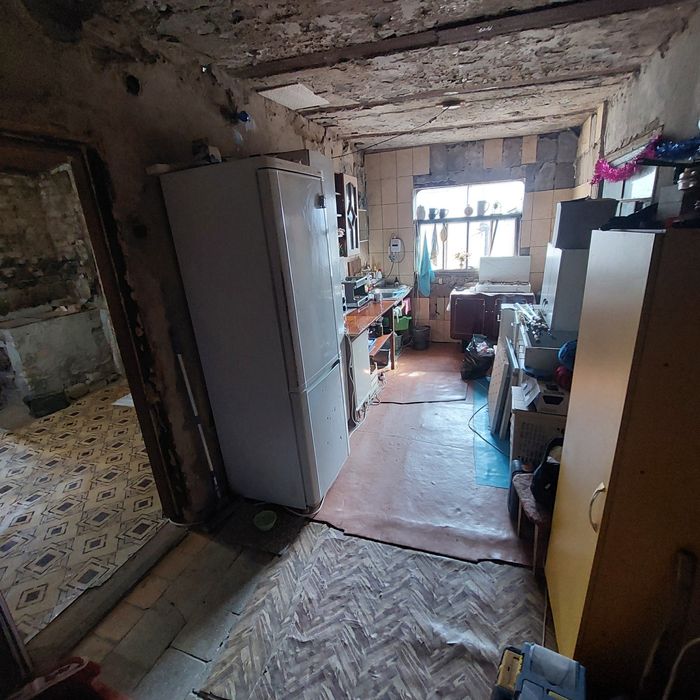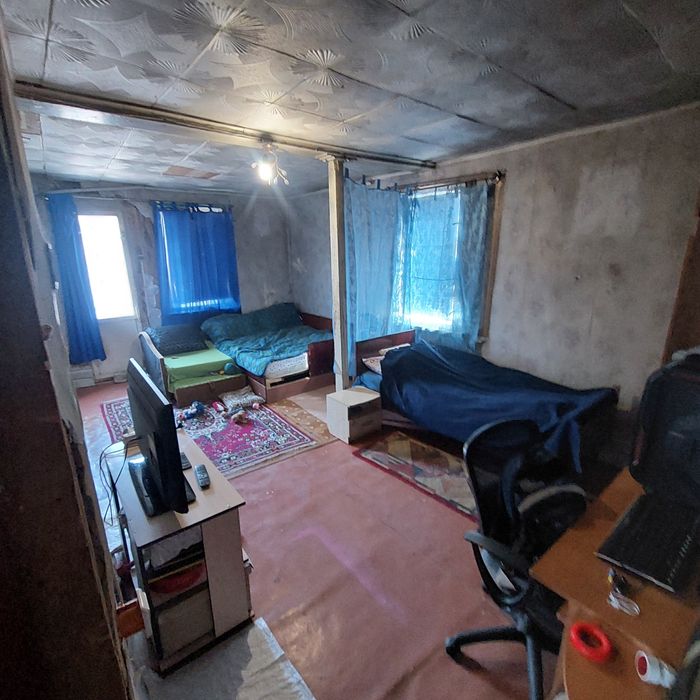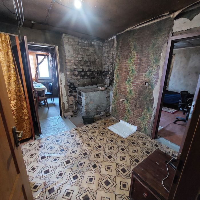 Цокольный этаж монолитный, на 4е комнаты, с полметровыми стенами,готовые под бункер /баню сауну. На 1 этаже 3 комнаты, и пристроена кухня. Вода питьевая круглый год, техническая по сезону. В доме есть печь, груба- все функционирует, дом отлично держит тепло. Крыша из профаллюминия. Дом требует ремонта. Частично оставляем стройматериалы. Мебель.