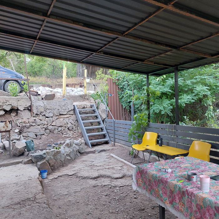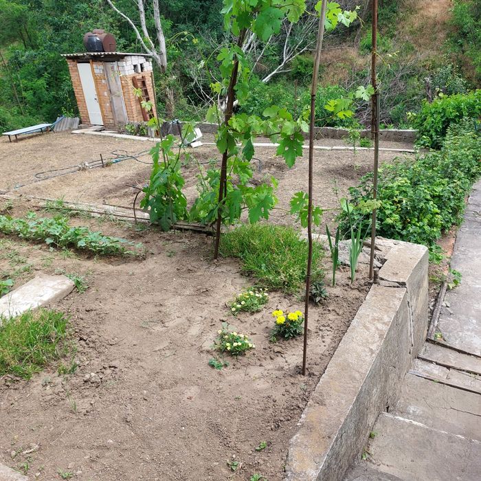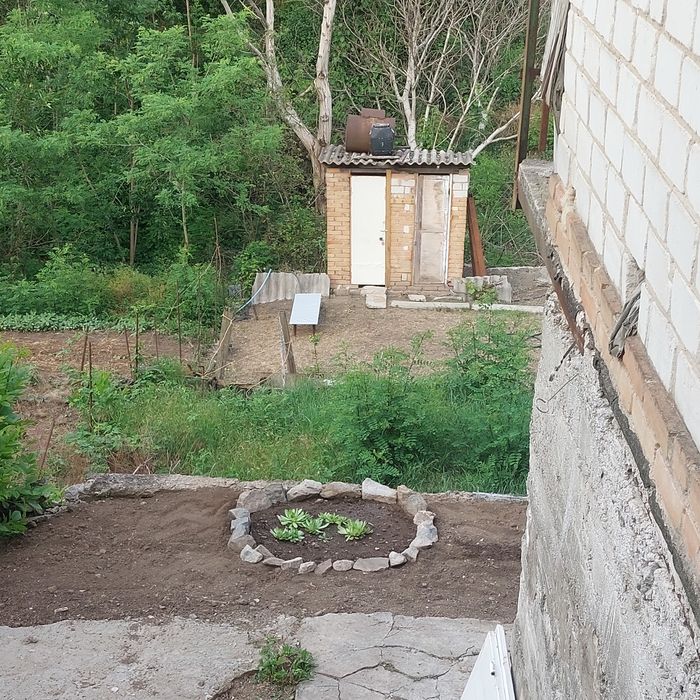 Участок 4.5 соток. Дом на 3 этажа- цоколь, 1 этаж и чердак. Дом приватизирован. Есть дворик с навесом. Вода заведена в дом. Душ,туалет на улице. Дача терассная, 2 терассы под огород.