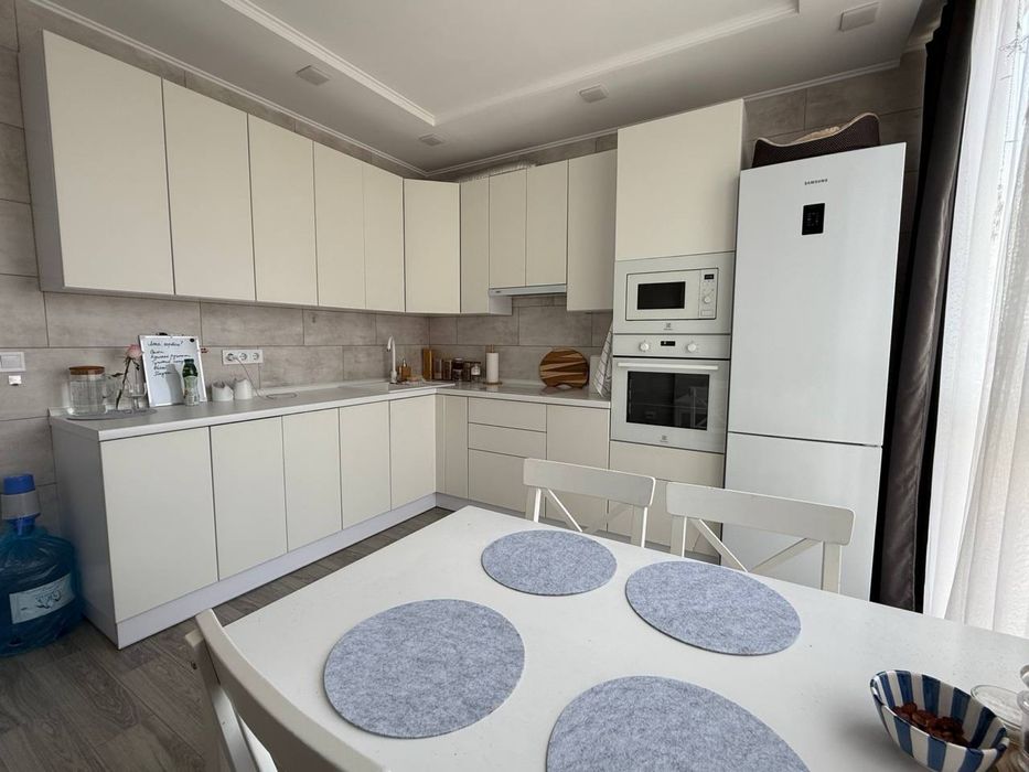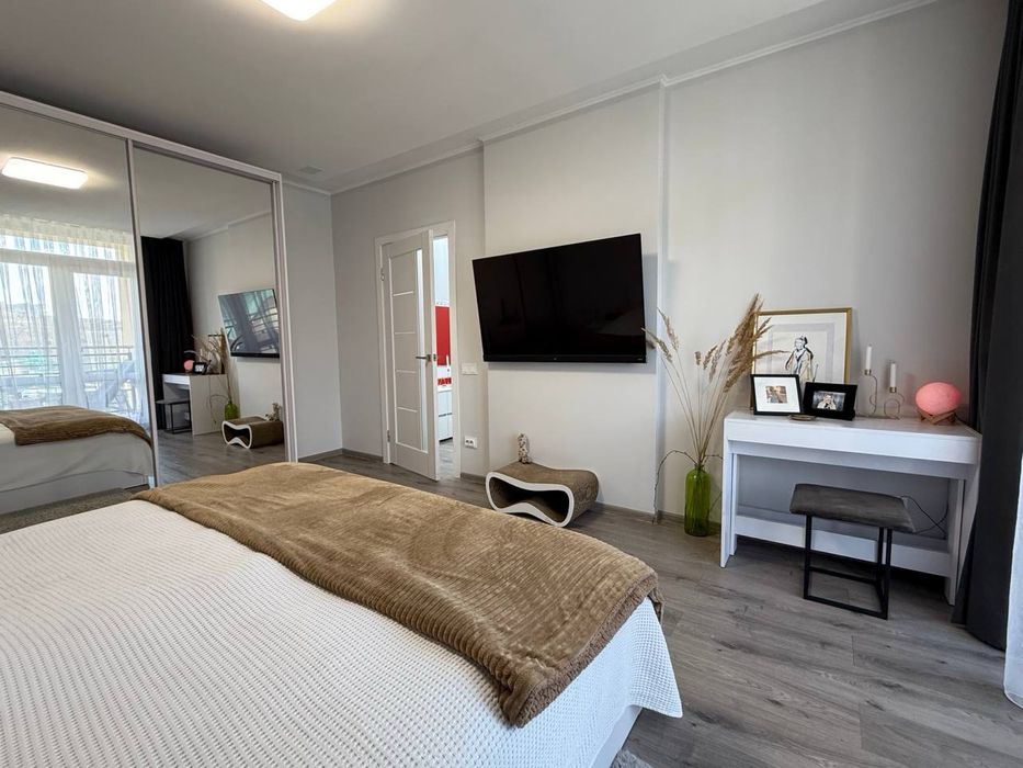 На даний момент у квартирі проживає орендарка (видно по фото), виселення — наприкінці квітня. Всі особисті речі будуть забрані, меблі залишаються. Також залишається телевізор в спальні (4к, 55 дюймів)