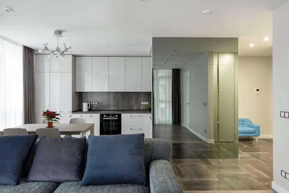Кухня стильна і оснащена усією необхідною побутовою технікою від провідних виробників: індукційна плита, духова шафа, витяжка, посудомийна машина, кондиціонери, телевізор, Wi-Fi. В квартирі є підлога з підігрівом, сантехніка класу люкс, бойлер, пральна машина, датчики витоків води. Установлені фільтри для води: груба очистка і система зворотного осмосу з мінералізатором вода чиста і смачна.