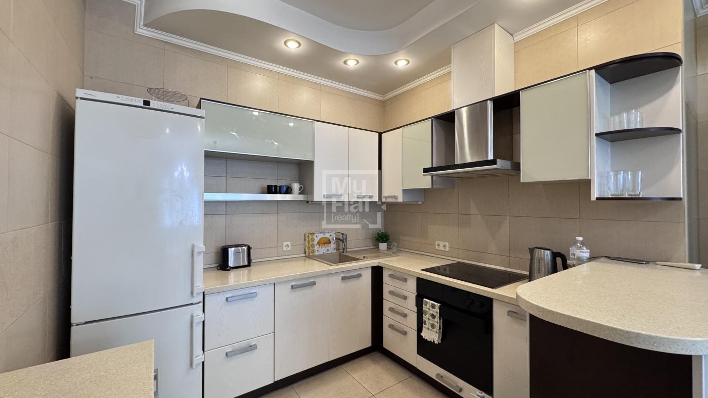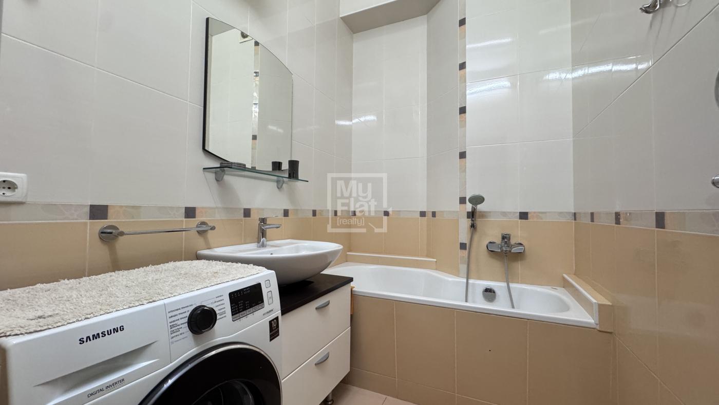 3-кімнатна квартира площею 65 кв.м розташована на 3 поверсі нового будинку з паркінгом. Складається з 2-х спальних кімнат, кухня студіо, 2 с/в, ванна та душова кабінка. Оформлена у світлих тонах, виконаний ремонт, є парковка.