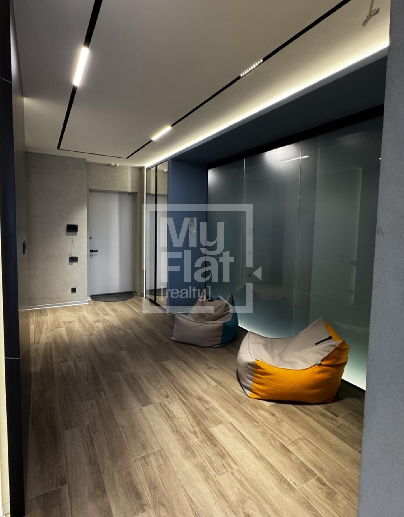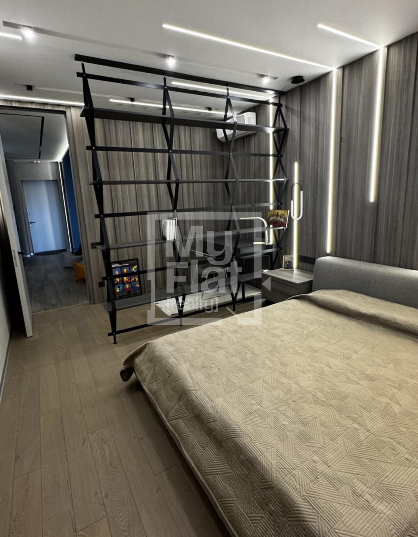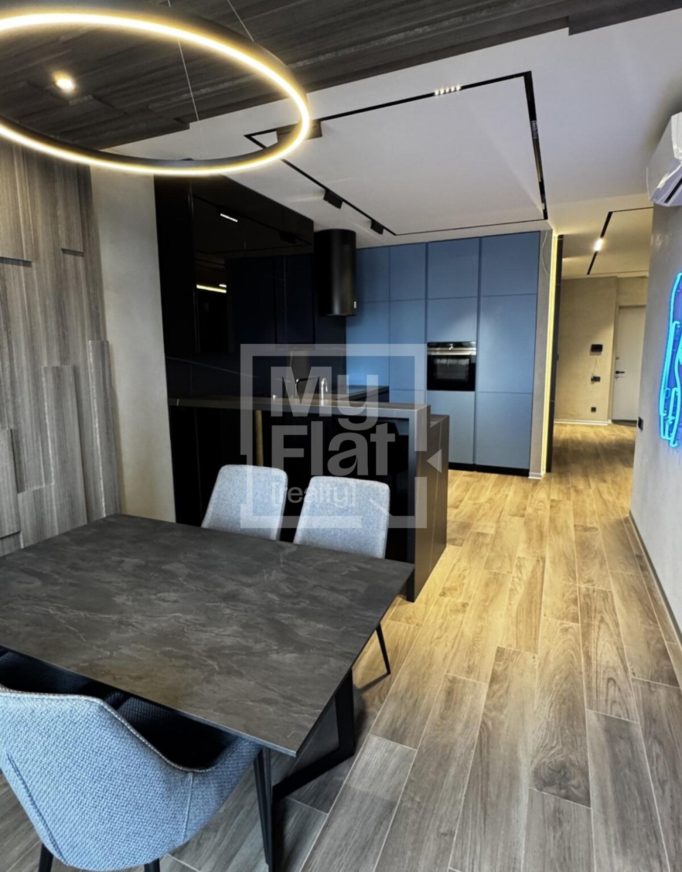 Продається однокімнатна квартира, 76,4 кв.м, на 17/24 поверсі. В квартирі виконано дизайнерський ремонт. Всі меблі, пральна, сушильна та посудомийна машини, електрична плита, духова шафа, мікрохвильова піч, кондиціонер, холодильник, витяжка залишаються новому власнику. Обладнана зручна обідня зона Будинок побудовано в 2018 році. Є доступ до підземного паркінгу. В пішій доступності є метро Палац Україна, Олімпійська та Печерська.