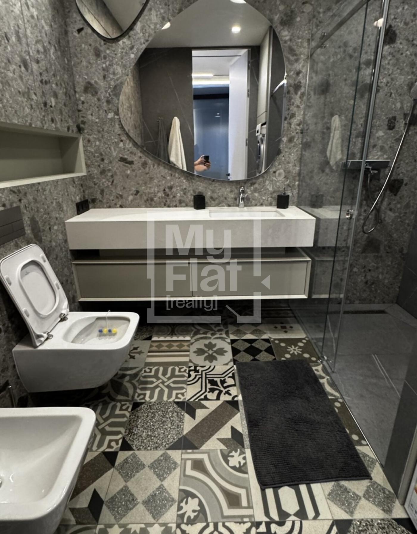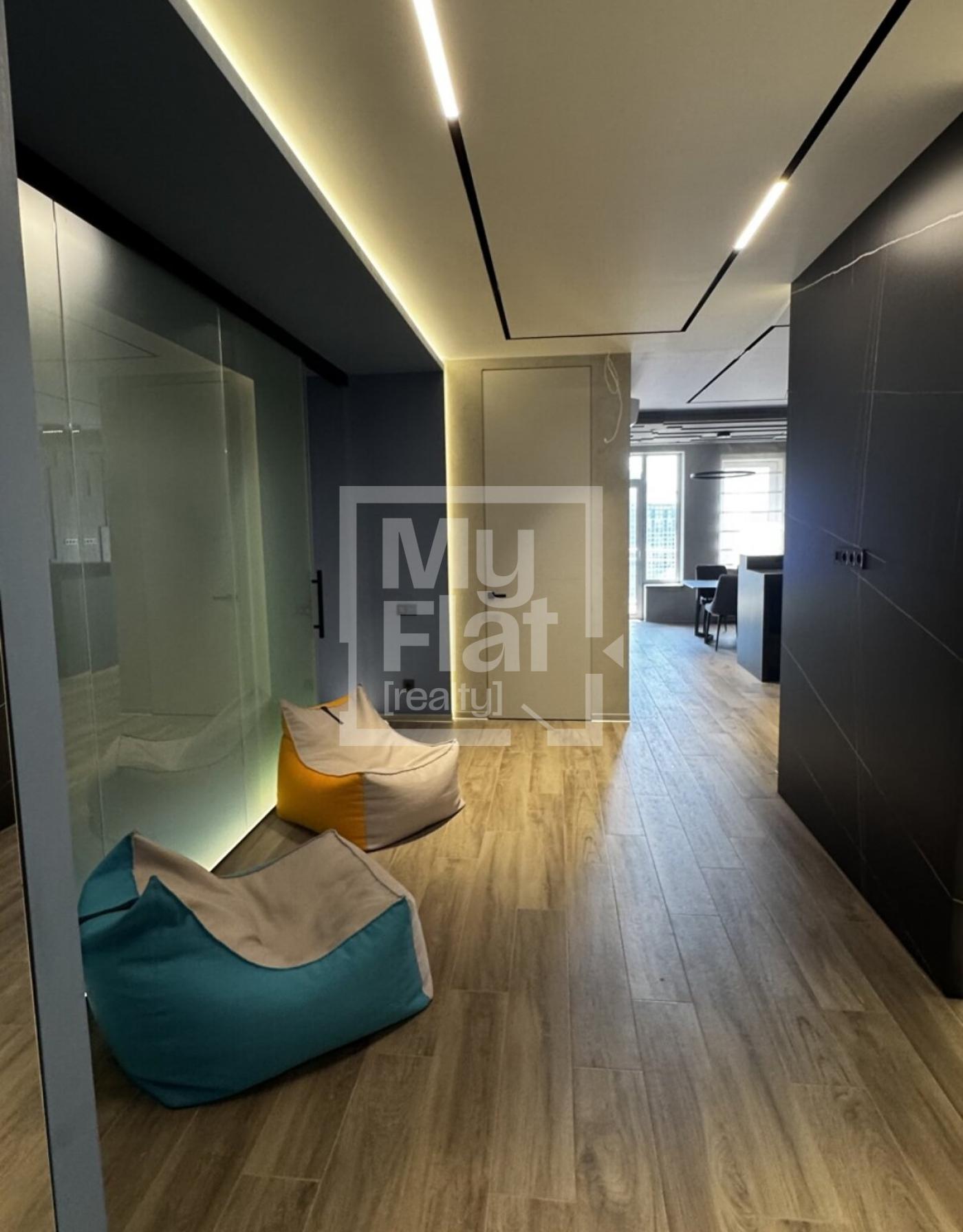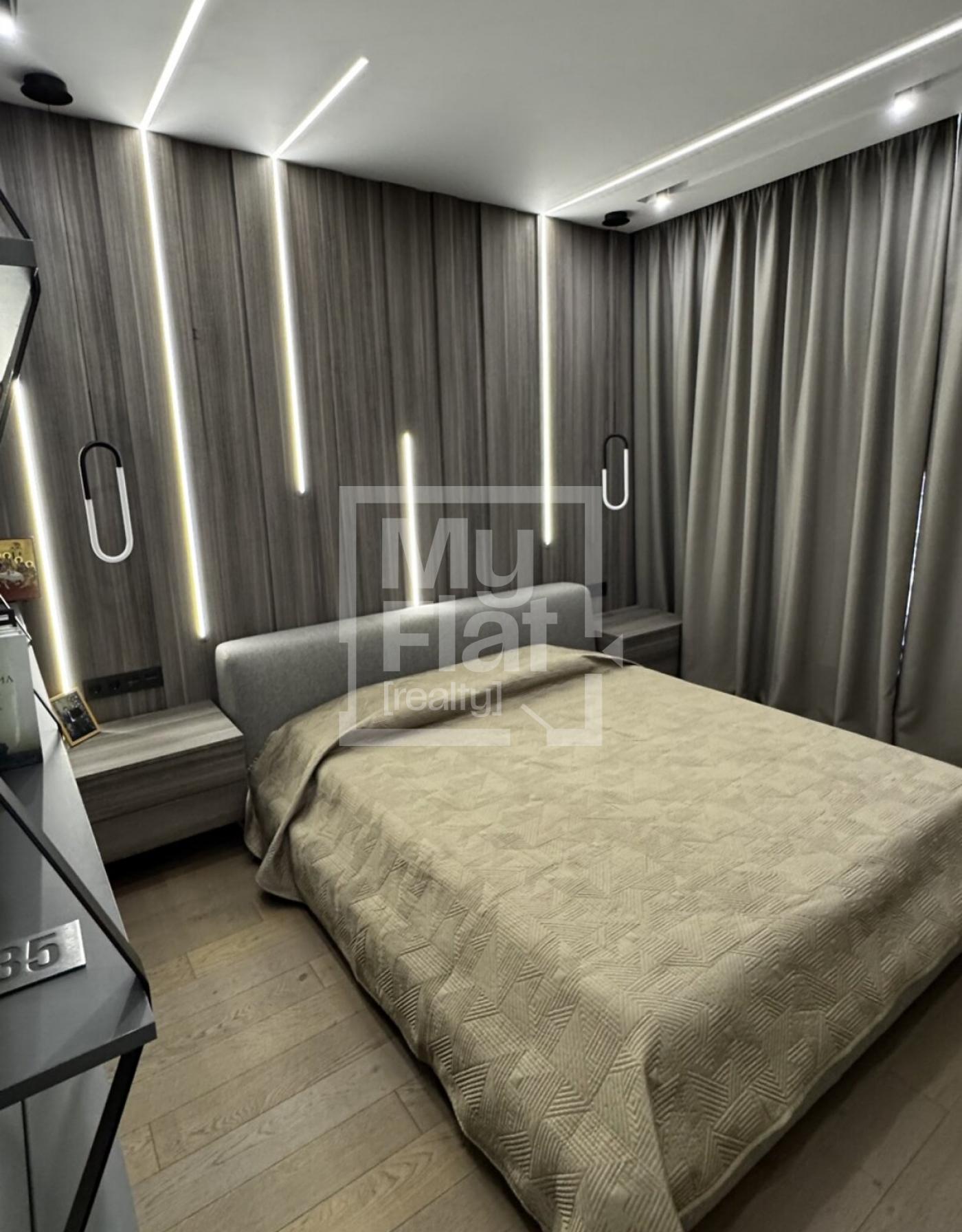 Продається однокімнатна квартира, 76,4 кв.м, на 17/24 поверсі. В квартирі виконано дизайнерський ремонт. Всі меблі, пральна, сушильна та посудомийна машини, електрична плита, духова шафа, мікрохвильова піч, кондиціонер, холодильник, витяжка залишаються новому власнику. Обладнана зручна обідня зона Будинок побудовано в 2018 році. Є доступ до підземного паркінгу. В пішій доступності є метро Палац Україна, Олімпійська та Печерська.
