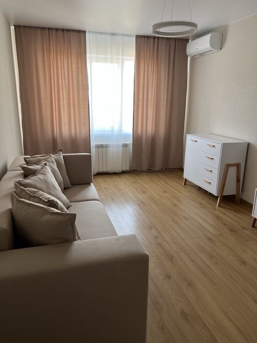 Квартира з сучасним якісним ремонтом — ви станете першим орендарем. Усі меблі та техніка абсолютно нові.