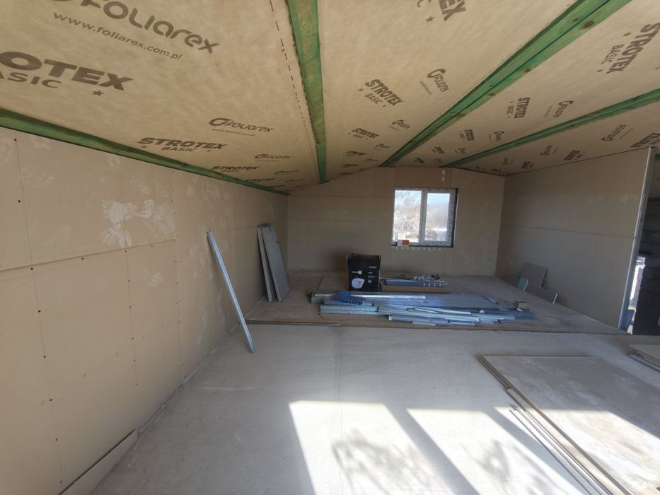 Дах утеплений якісними матеріалами.Стіни обшиті гіпсокортоном.