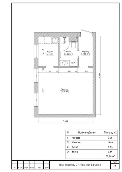 Площа: 30,4 / 19 / 4,5 м²