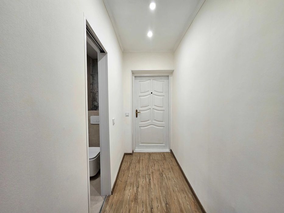 Квартира підготовлена для фінального облаштування — ви зможете зробити кухню, шафу та меблювання повністю під свій смак без зайвих переплат за чужий дизайн.