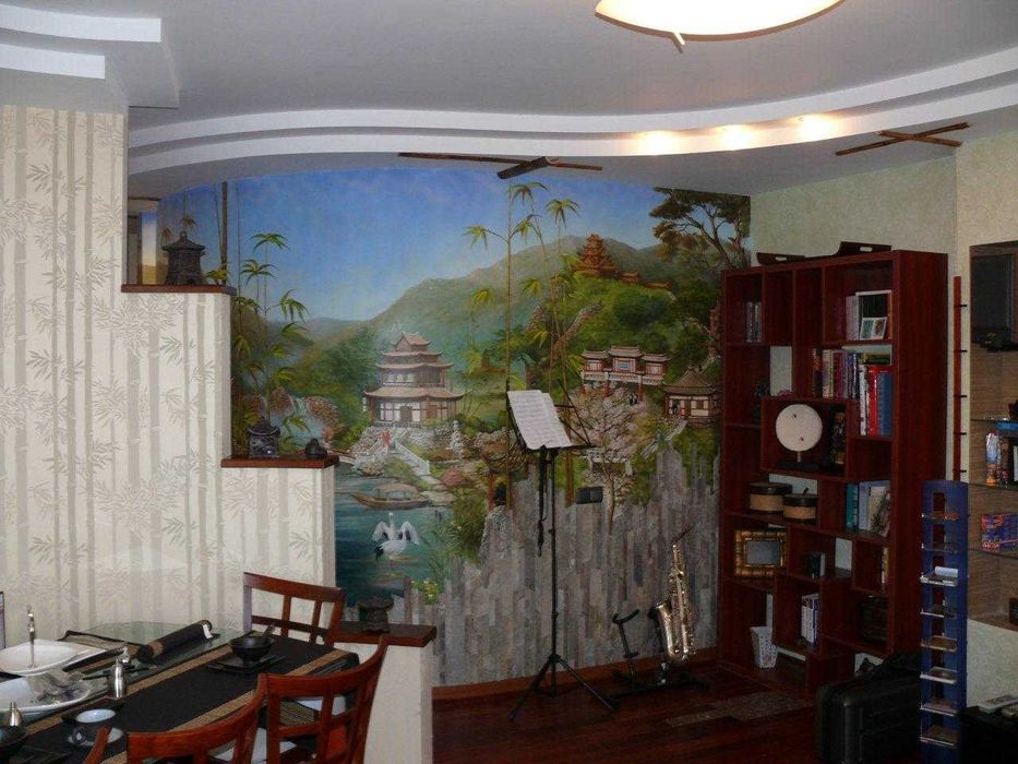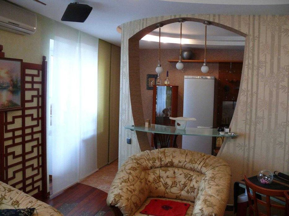 В квартирі зроблений дизайнерський ремонт в японському стилі, що на навантажує.