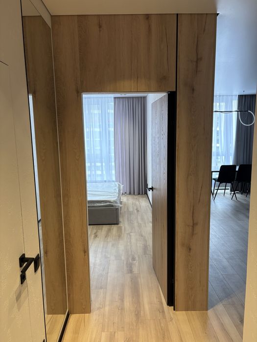 Квартира знаходиться на 17-му поверсі 24-поверхового будинку, вид у двір. Планування передбачає кухню-вітальню, коридор, окрему кімнату, санвузол з душовою. В квартирі виконано якісний ремонт, є всі необхідні меблі та техніка: холодильник, посудомийна машина, мікрохвильова та духова піч, варильна поверхня, пральна машина, кондиціонер, телевізор, бойлер тощо. Вбудована техніка від Elektrolux. Тепла підлога у санвузлі. Багато варіантів освітлення та місць для зберігання.