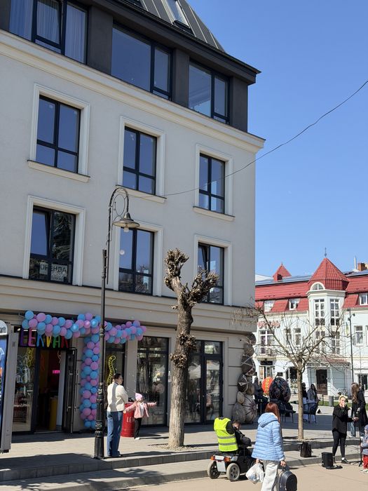 - з однієї сторони — вид на пішохідну центральну вулицю (стометрівку),