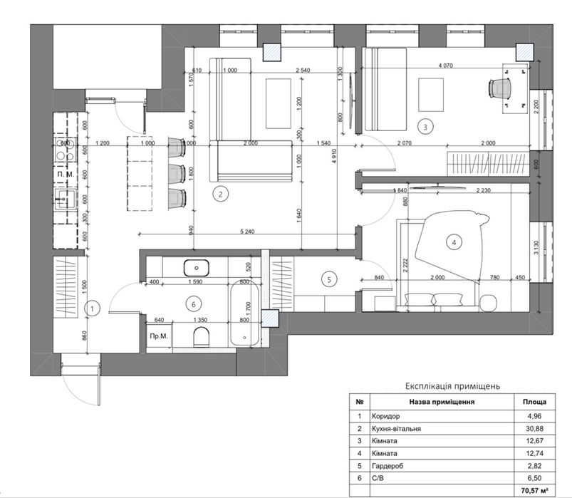 — кухня, об’єднана з вітальнею (зручний open space для життя та відпочинку)